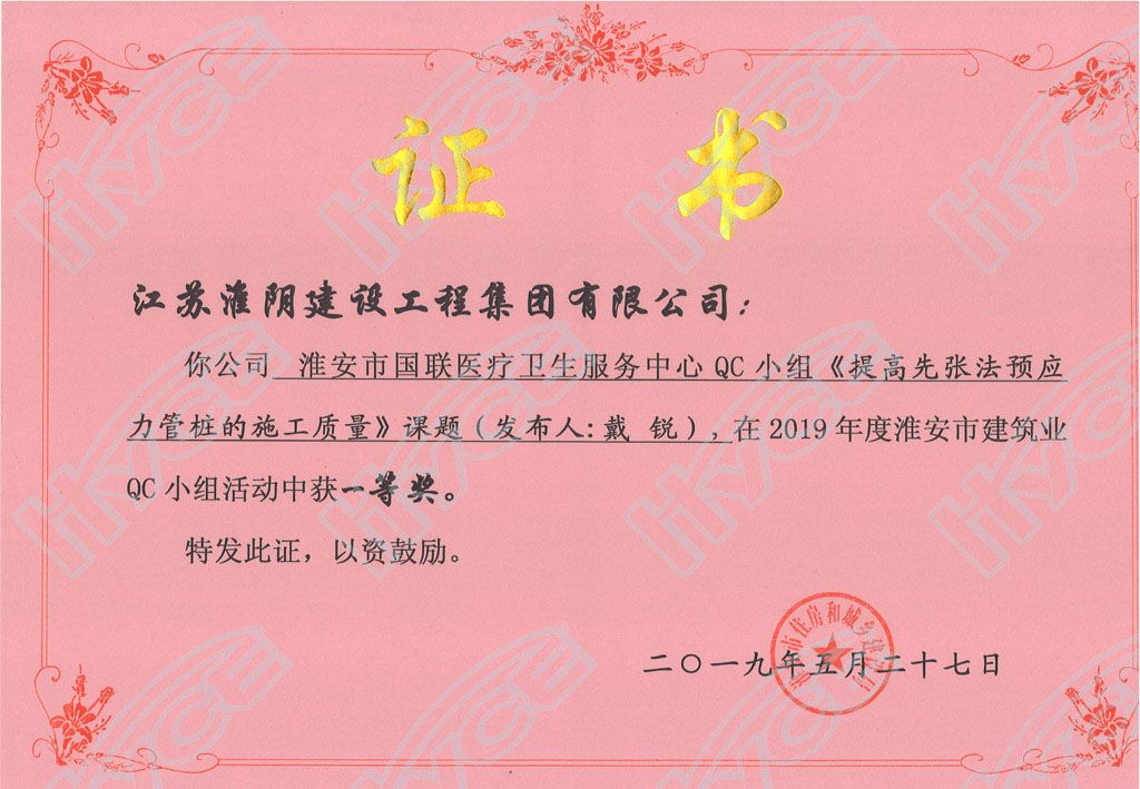 淮安市建筑业QC小组一等奖